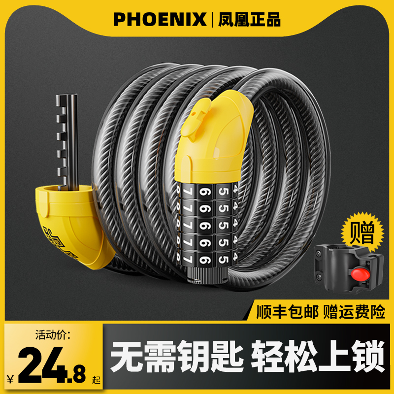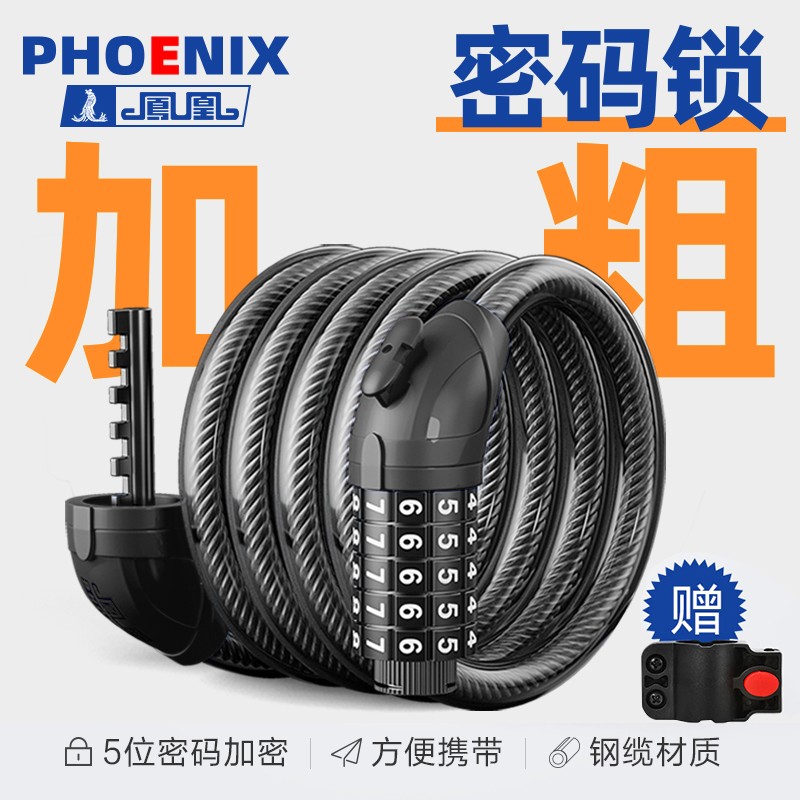 Phoenix bike lock anti-theft password steel cable lock electric battery electric bottle car padlock Mountain bike bike portable special-Taobao