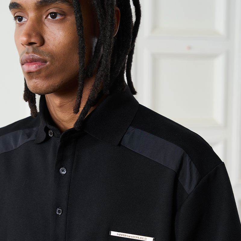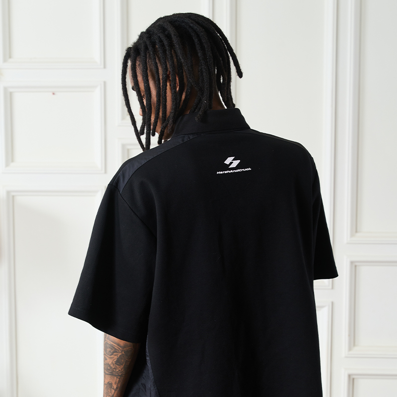 Harshandcruel micro-deconstructed metal nylon stitching design short-sleeved polo shirt cleanfit