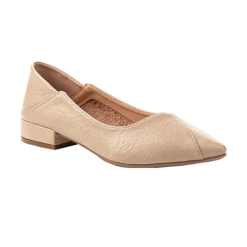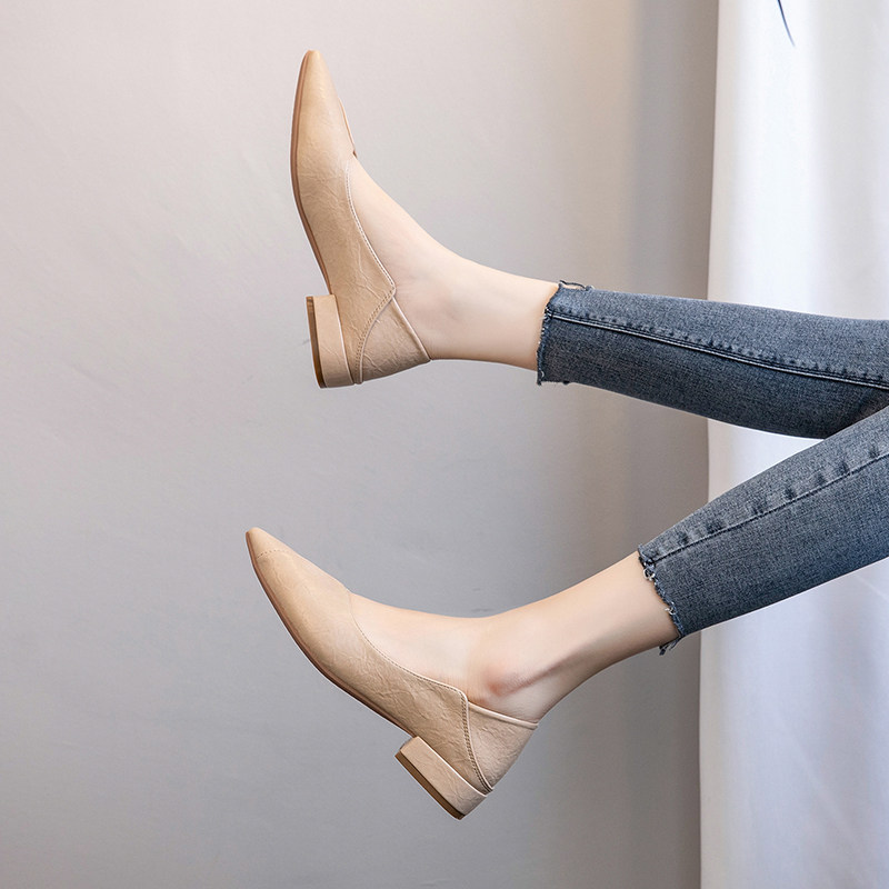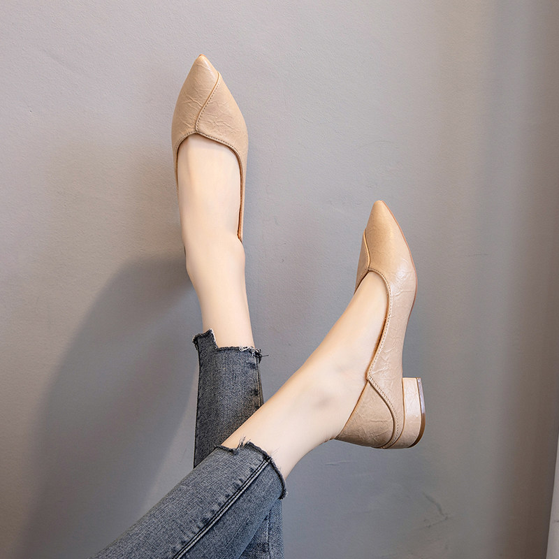 Tide Cards Single Shoes Woman 2023 Spring Summer New Low Heel Tip 100 Hitch Soft Leather Shallow Mouth Big Code Coarse Heel Working Shoes Women Shoes-Taobao