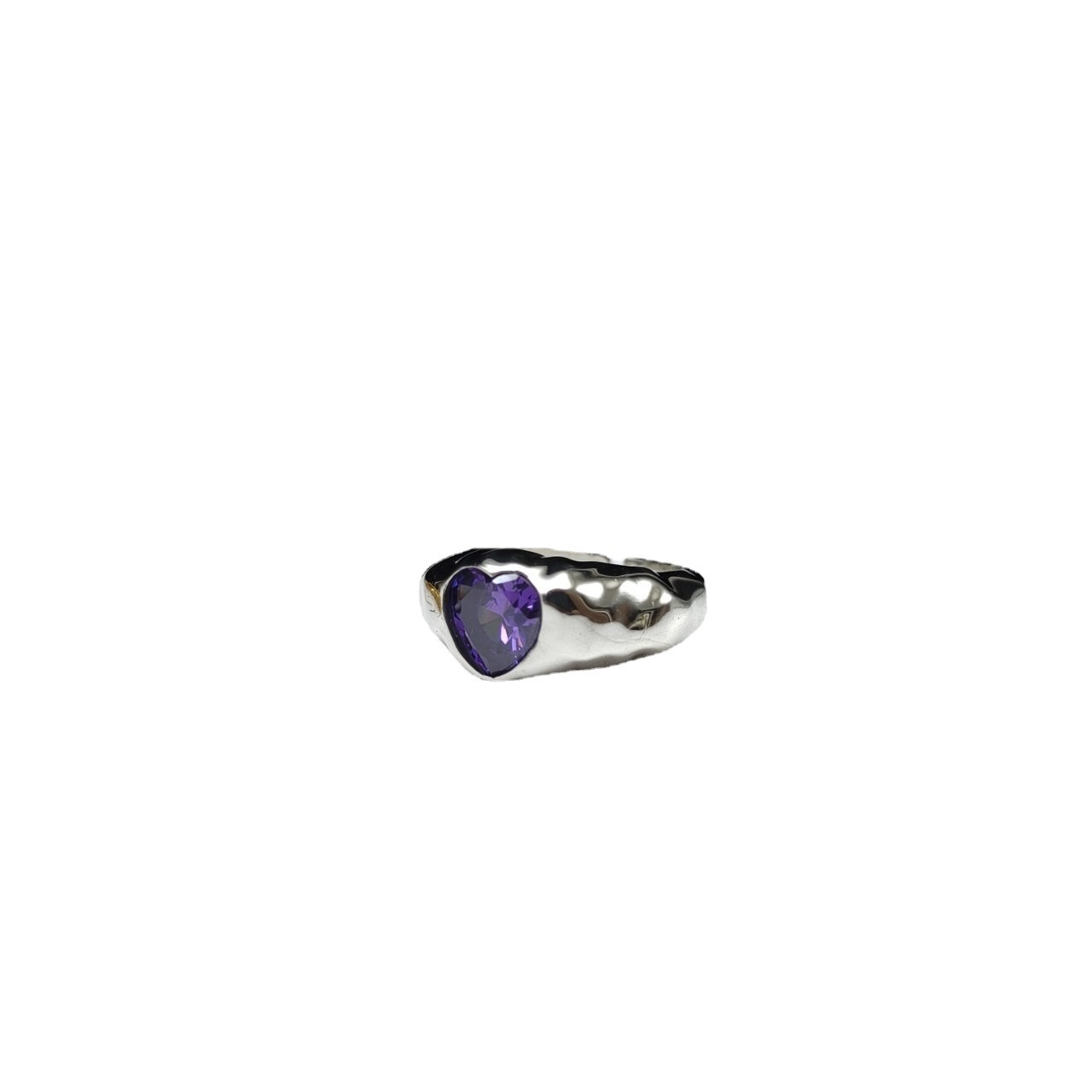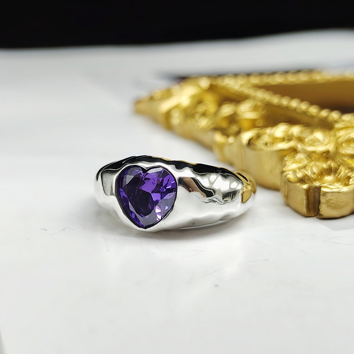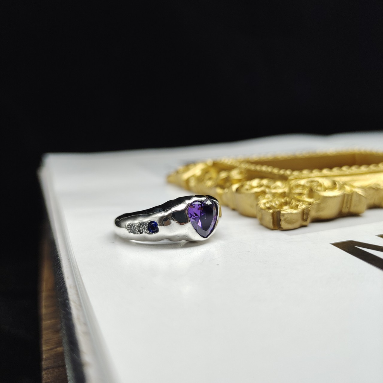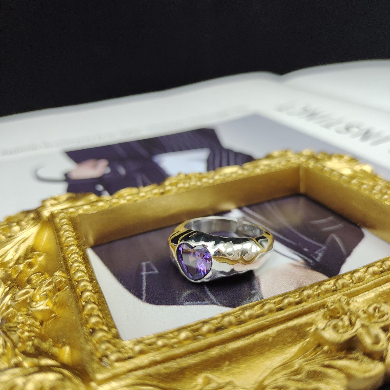 s925 Silver Light Luxury Light Purple Diamond Ring Girl in tide design cold air temperament fashion style European and American wind