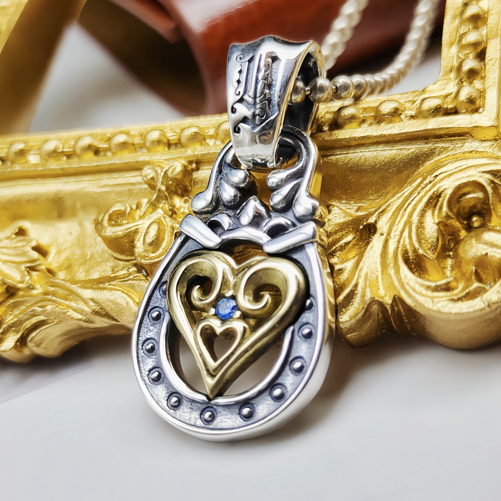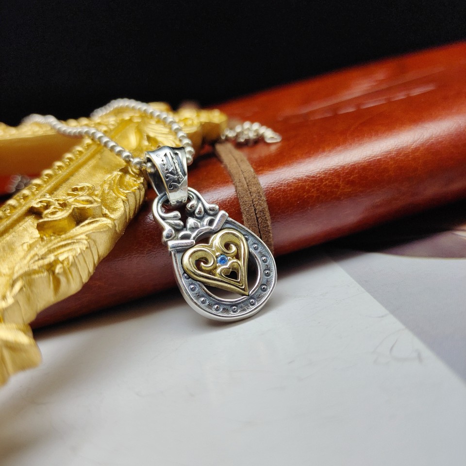 New s925 pure silver and European and American heavy industry personality dollar zircon love pendant pendant trend of men and women