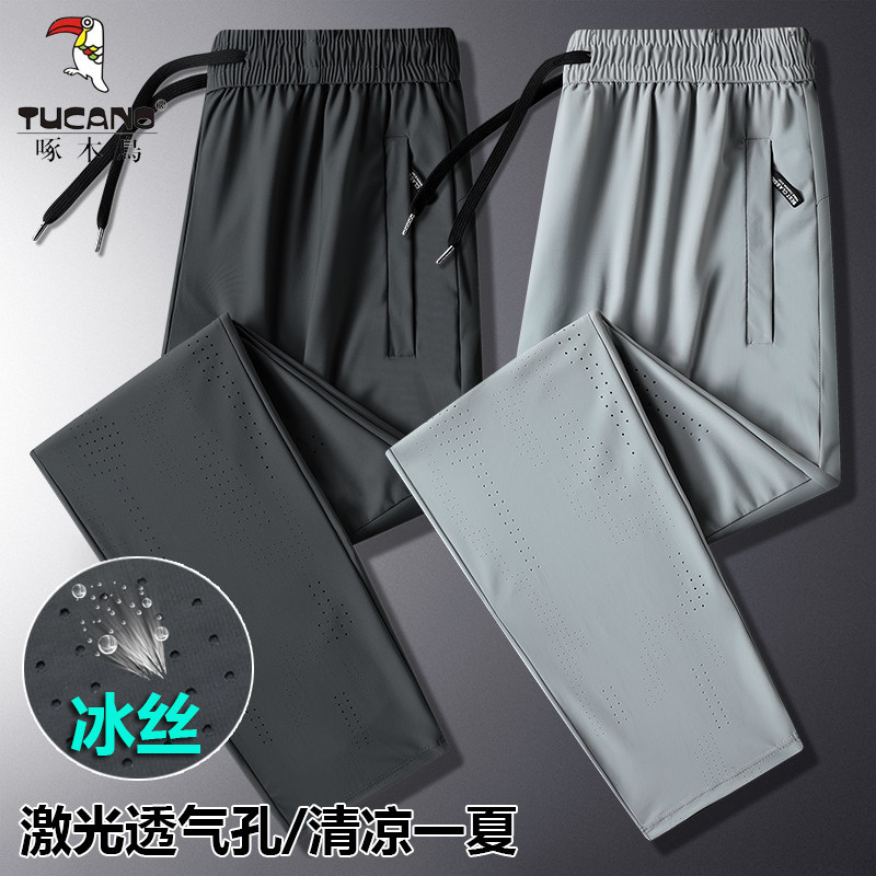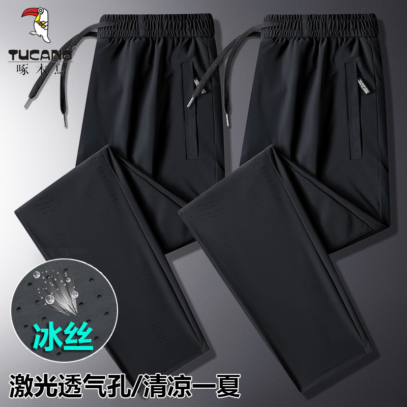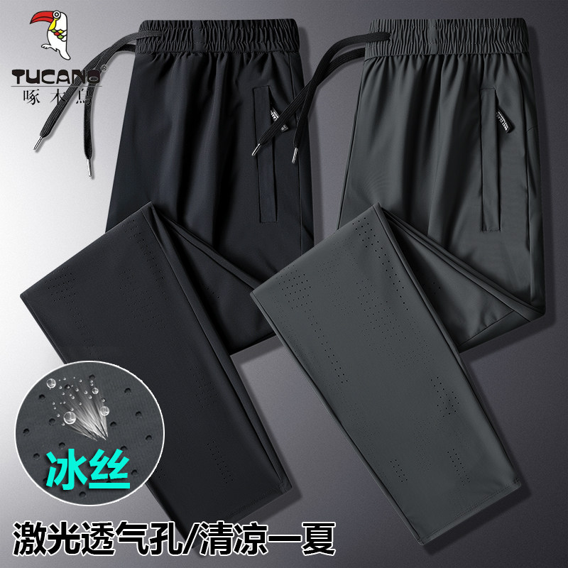 Woodpecker Ice Ice Silk Pants Men Summer Slim loose Big code High-play men casual pants Straight drum Quick Dry Sports Trousers-Taobao