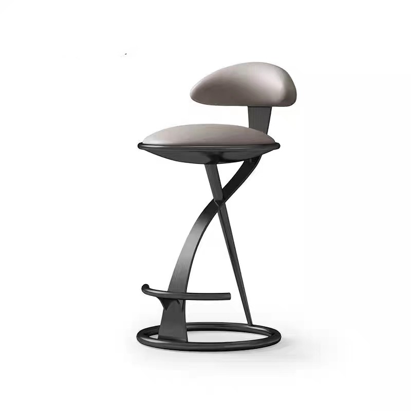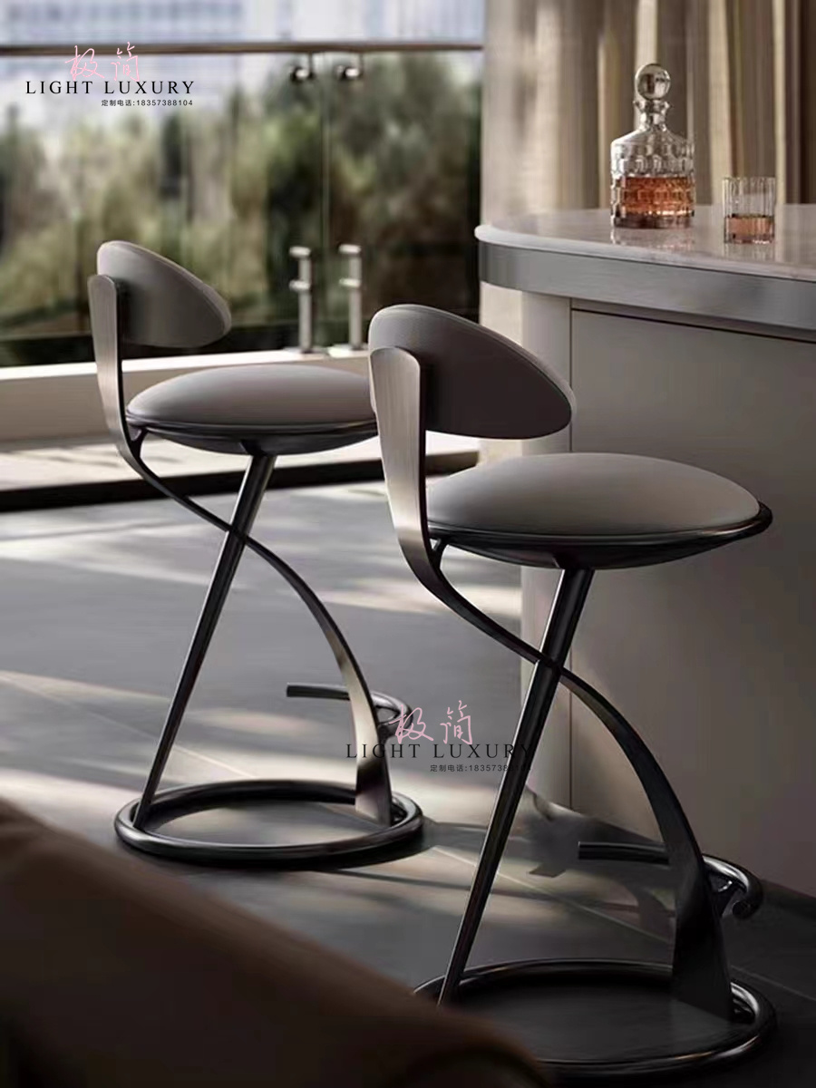Minimalist genuine leather light luxury modern stainless steel bar Bench Villa Head Layer Bull Leather Bar Chair Willy-style Home High Footstool-Taobao