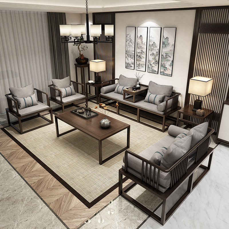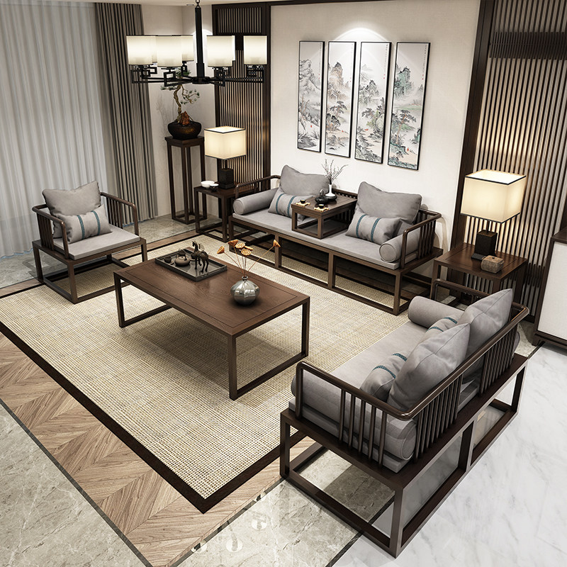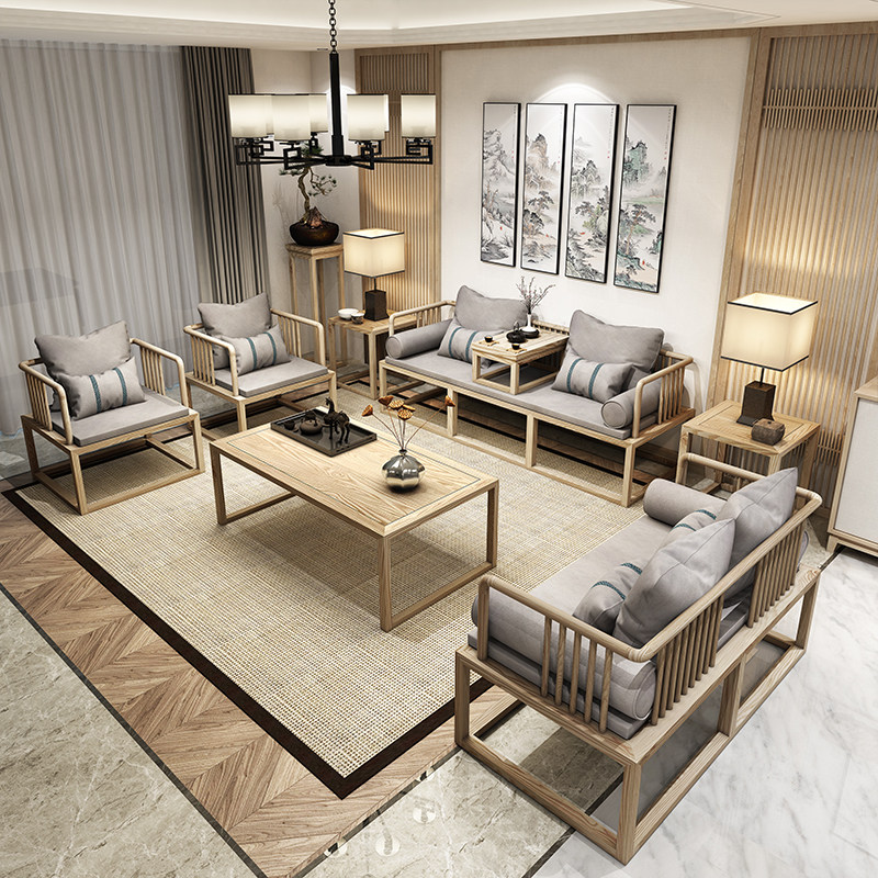 New Chinese sofa solid wood small family Type modern minimalist living room Minjuku Chan Seri white wax wood office light and luxurious composition-Taobao