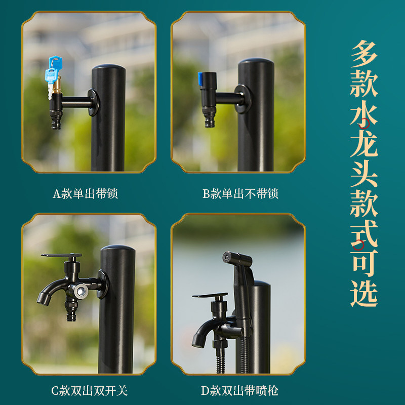Dwarf (outdoor black) Double-out tap High section (outdoor black) Double-out tap short (outdoor black) with lock tap dwarf (outdoor black) Single out of the tap High section (outdoor black) Single out of the tap