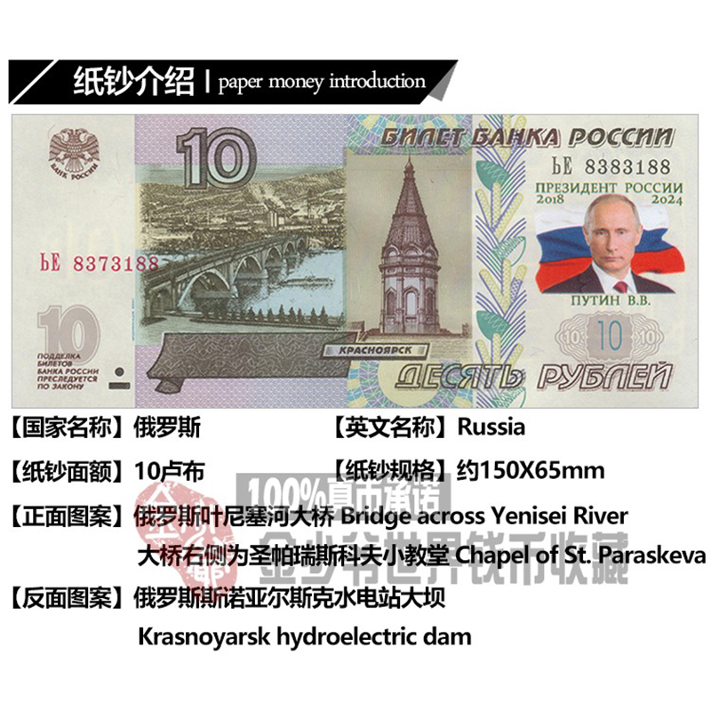 (special price new) Russia 10 rubles Putin commemorative banknotes 2018 European banknotes UNC genuine