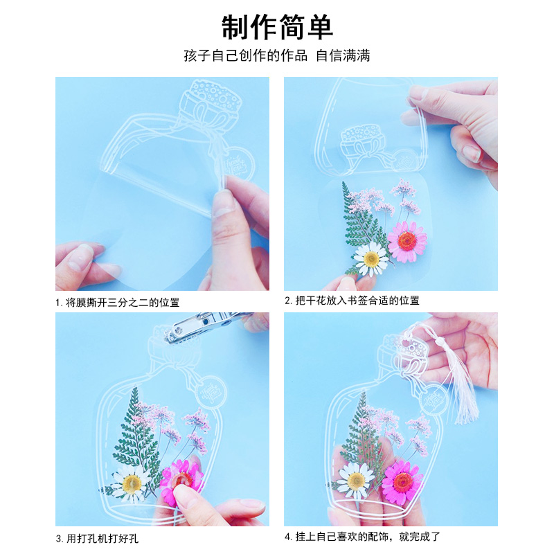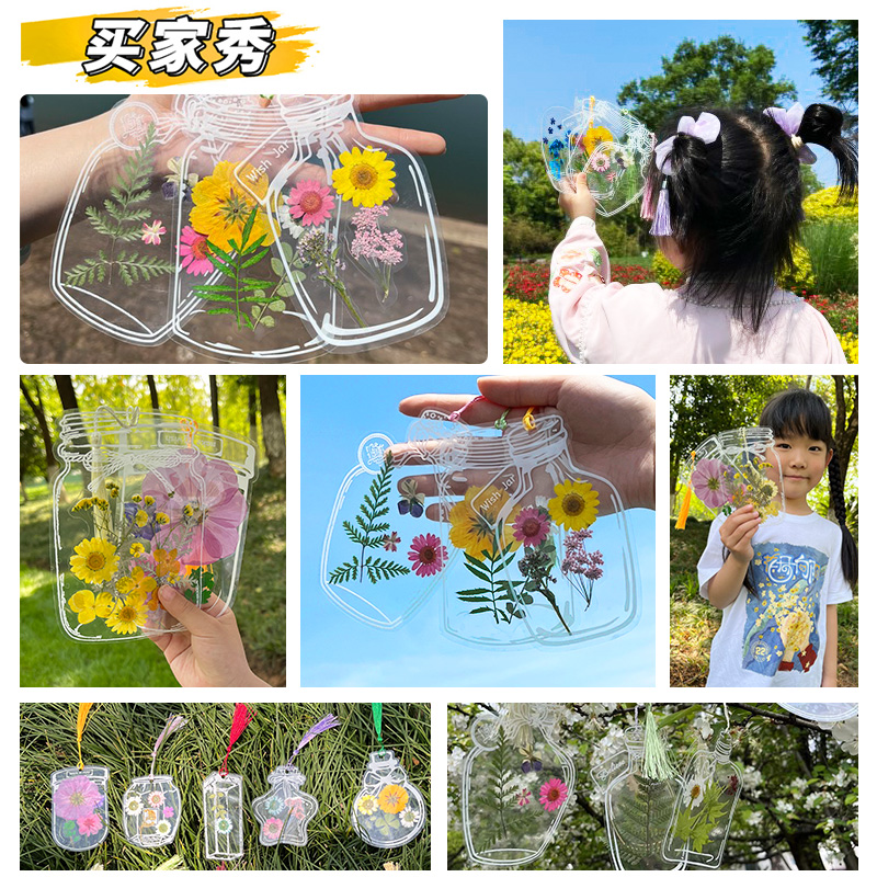 Dry Flowers Bookmark Mid-Autumn Festival Handmade Diy Material Gift Bottle of autumn childhood Collection of transparent leaf specimen Glass plastic film Plastic Film Production Kindergarten Elementary School Children Creative Stickers-Taobao