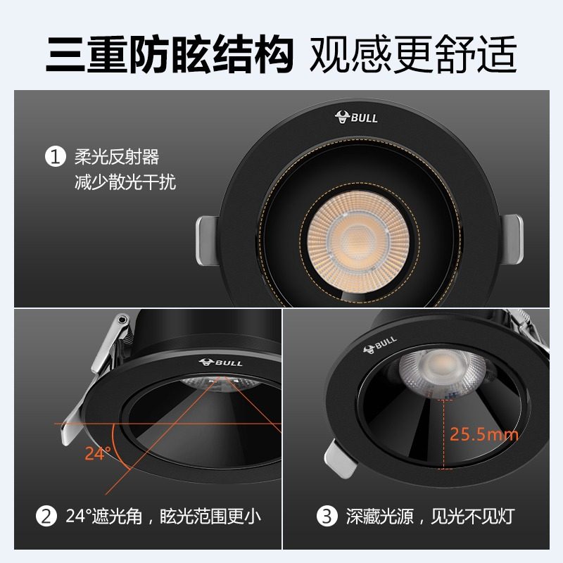 Bull Anti Glare Spotlight Recessed lamp cylinder light Living room No main lamp Lighting small hills Wash Wall Lights 410-Taobao
