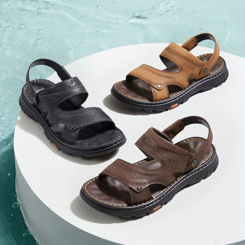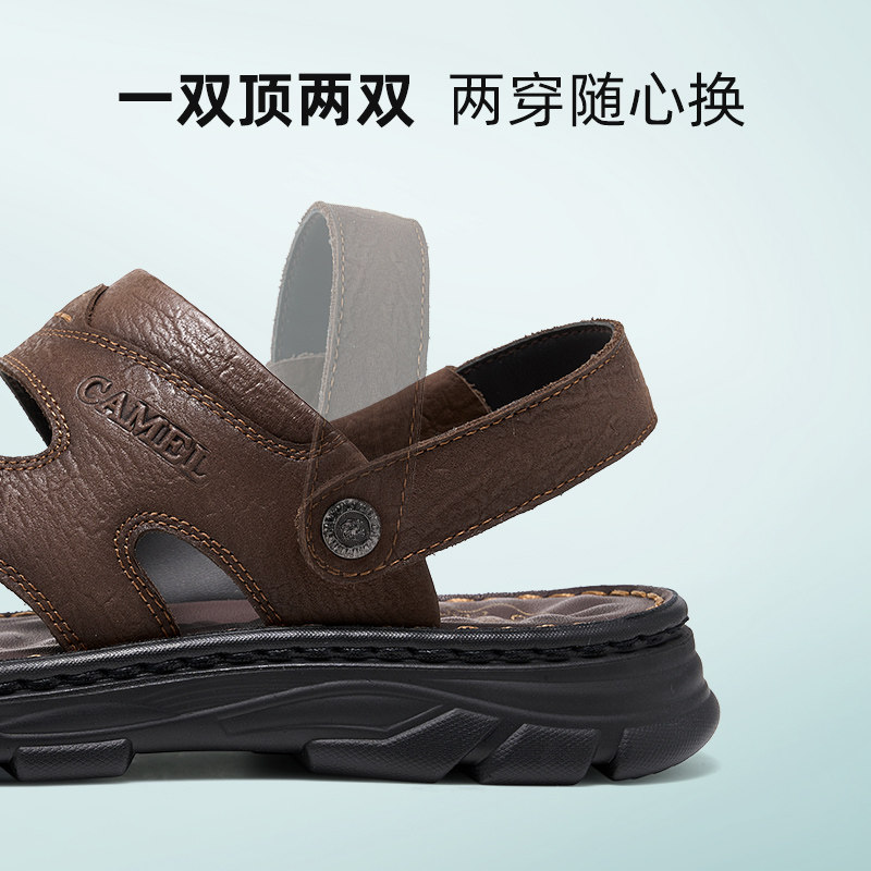 Camel Men's Shoes Head Layer Cow Leather Sandals Men 2023 New Summer Exterior Wearing Cool Tug Dad Genuine Leather Business Beach Shoes-Taobao