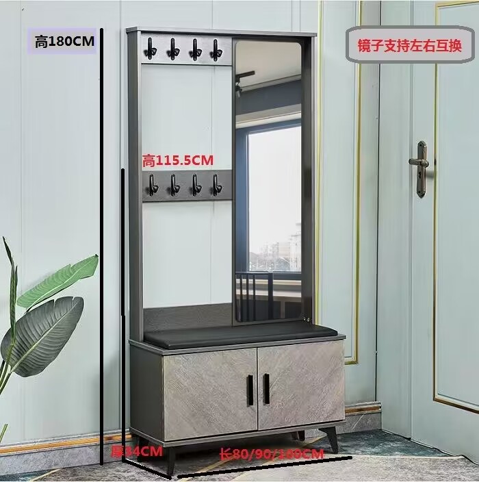 With mirror hanging hanger European-style door hall cabinet Xuanguan partition brief modern shoe cabinet clothes and hat cabinet changing shoes stool-Taobao