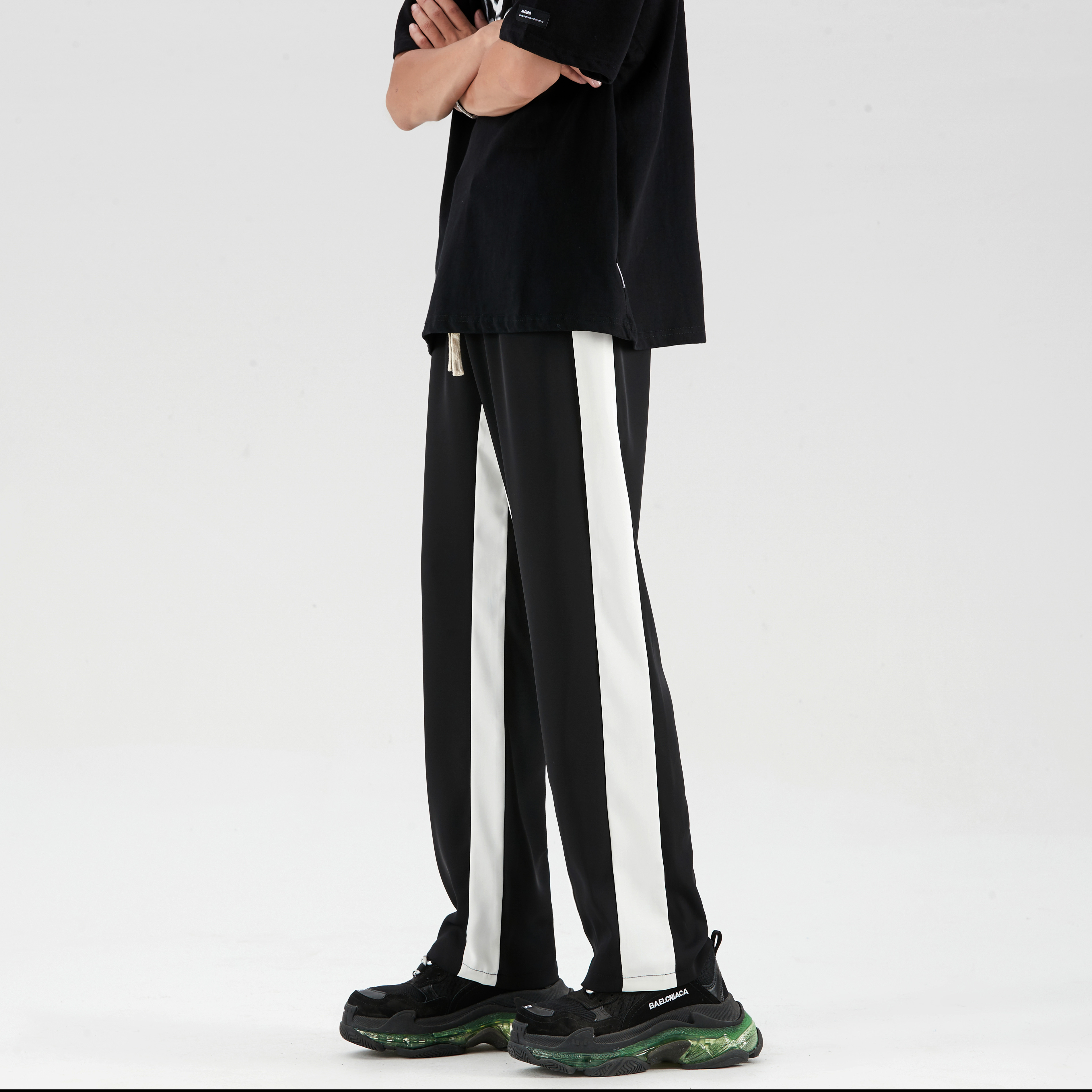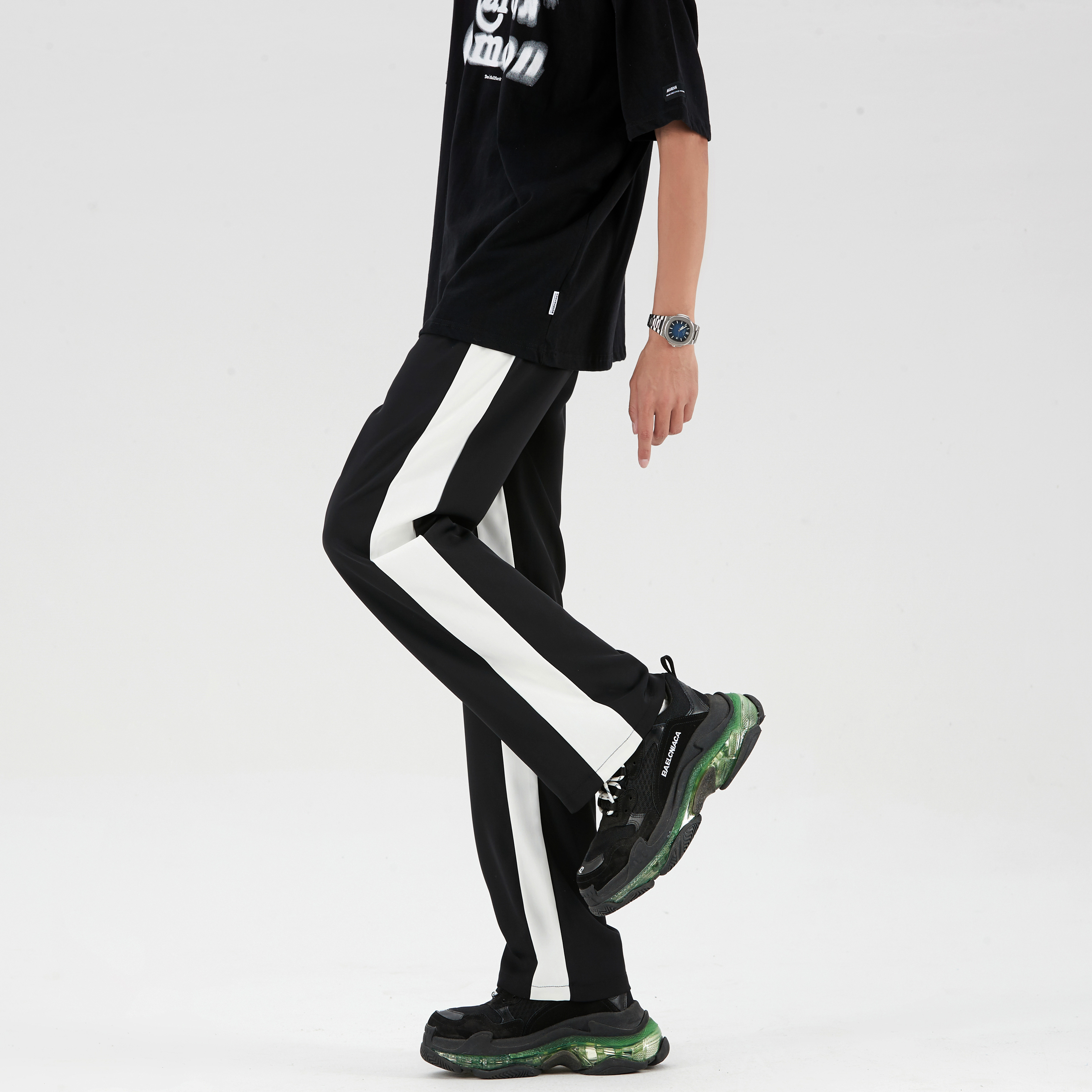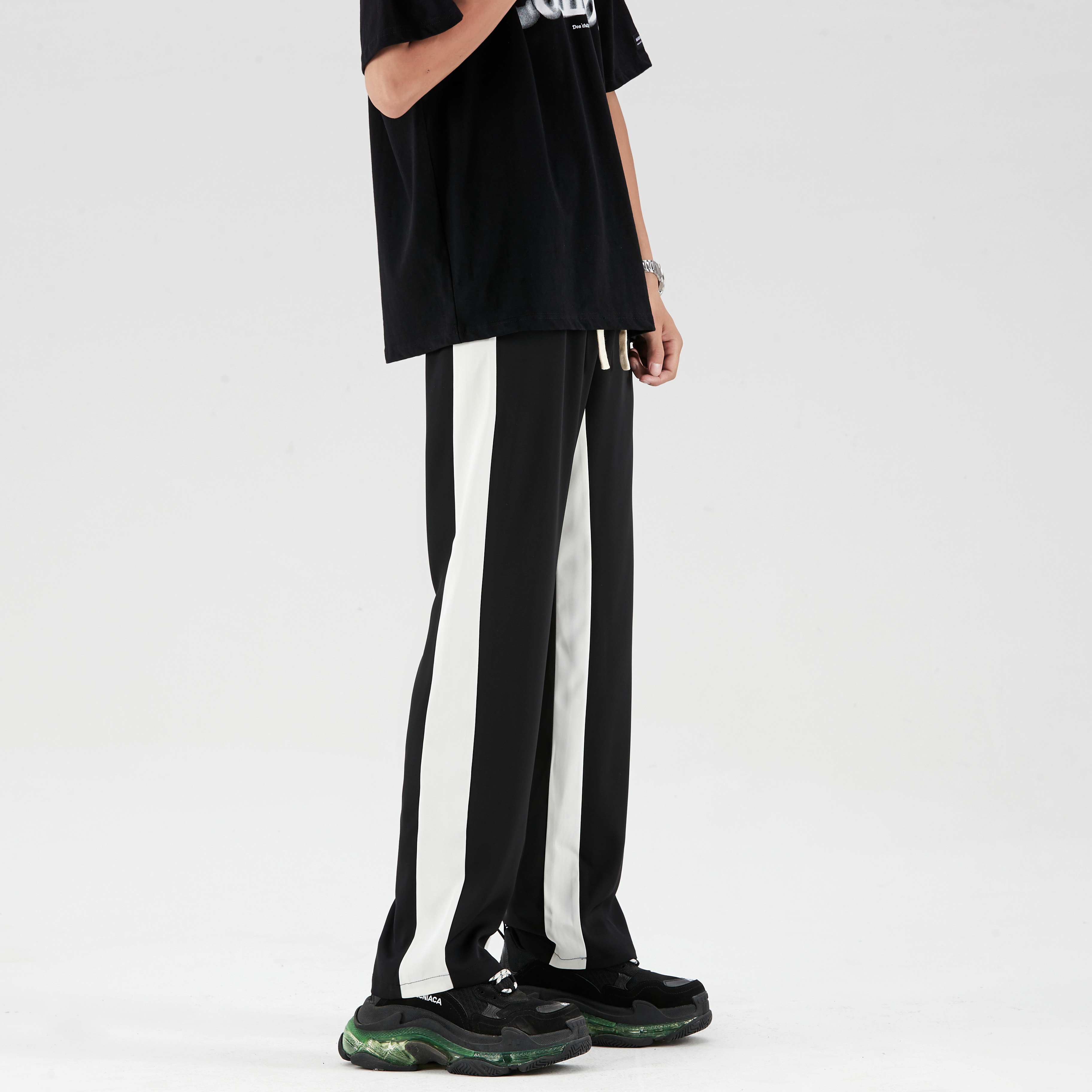 Pituitary ice silk repair pants 2023 male and female identical black and white spelled summer thin Korean version of a straight cylinder casual pants-Taobao
