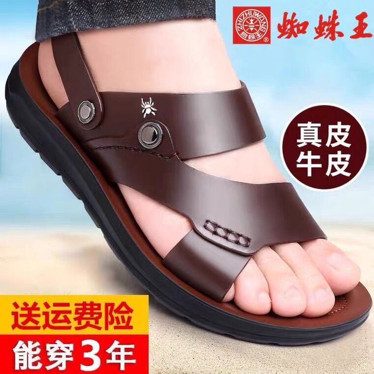 Spider King Official Flagship Store Men's Shoes Summer Genuine Leather Soft-bottom Dad Cool Slippers Dual Purpose Beach Shoes Men Cool Shoes-Taobao