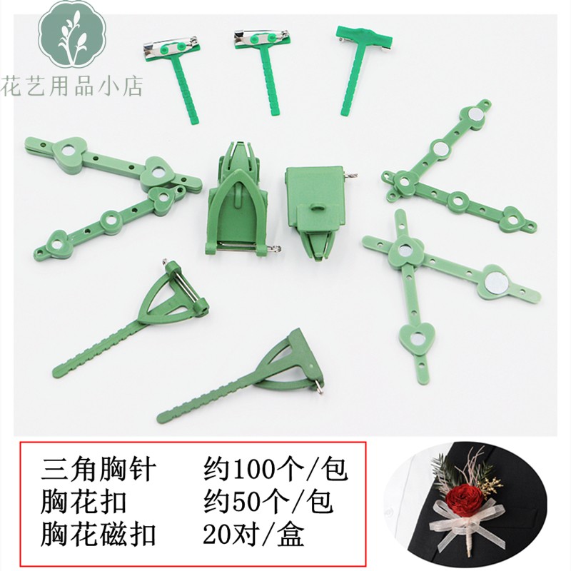 Triangle Brooch Green 100 Packs Triangle Brooch White 100 Chest Flower Buttons White 50 Chest Flower Buttons Green 50 packets transparent Chest Flower Clip 10