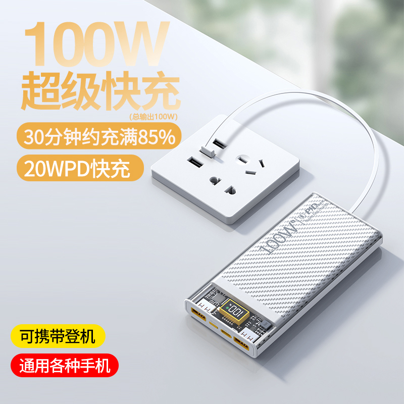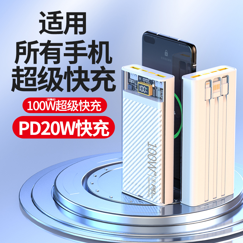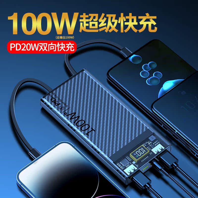 Super fast charging treasure with wire charging treasure 50,000 mA 100W ultra thin and compact portable mini 20,000 mA mobile power supply for Huawei Xiaomi Apple special mobile phone