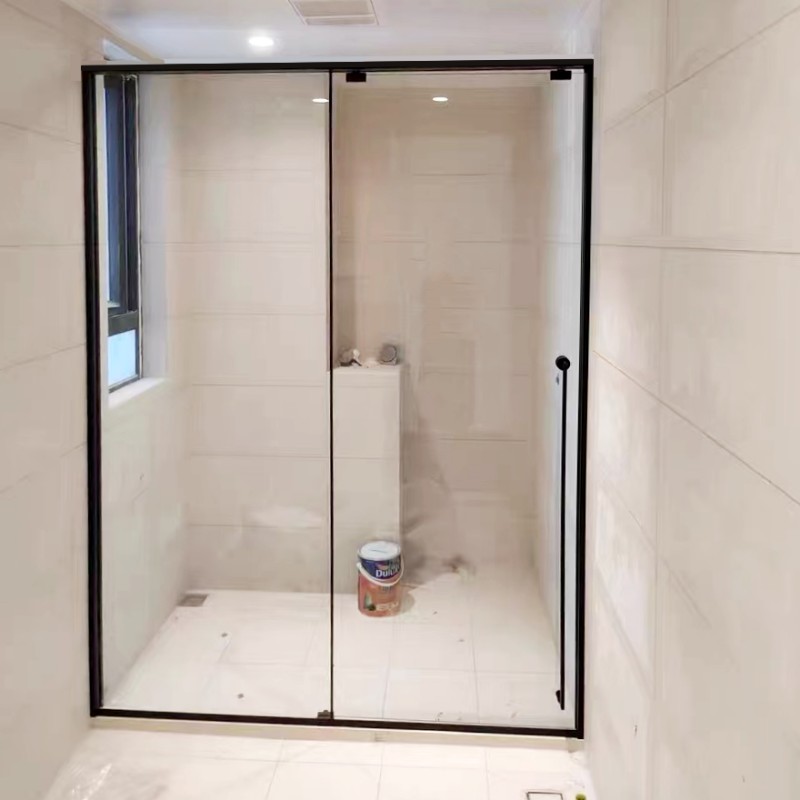 Ultra narrow push and pull shower room partition stainless steel black buffer door bathroom dry and wet separation Chengdu installation