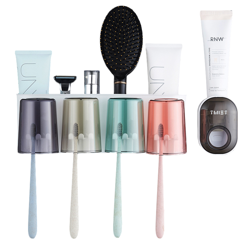 Toothbrush Shelf Free to punch toilet gargling cup tooth cup toothbrush shelf wall-hanging family tooth toothpaste suit-Taobao