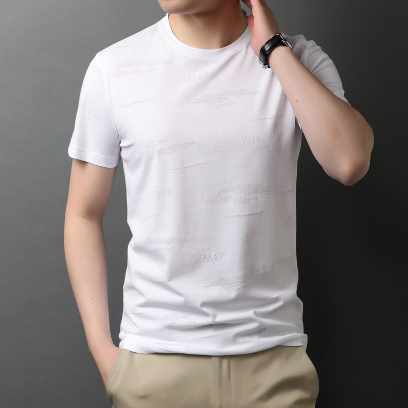 Chi Armanian men short sleeve summer t-shirt high-end ice wire pure cotton collar printing leisure bottom half sleeve tide T