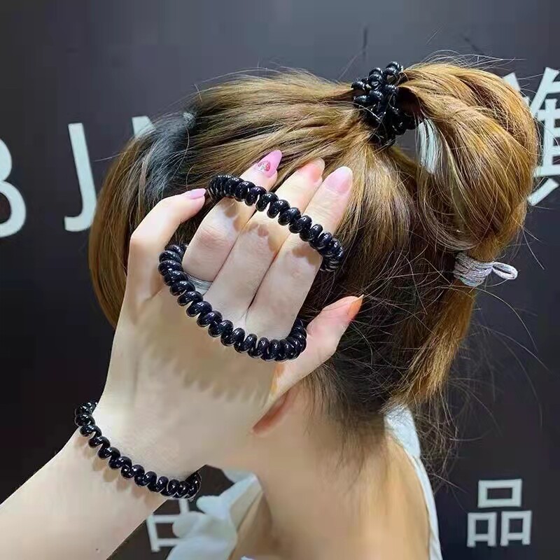 Classic high elastic no-mark durable frosted telephone line hair ring high elastic leather fascia women Zine hair rope head finishing temperament-Taobao