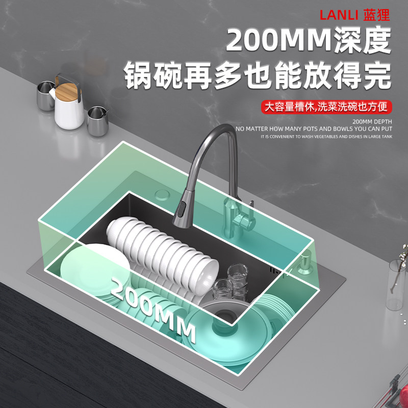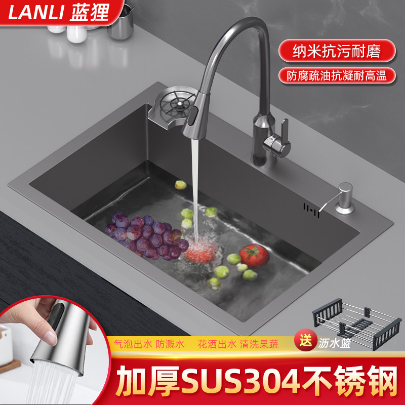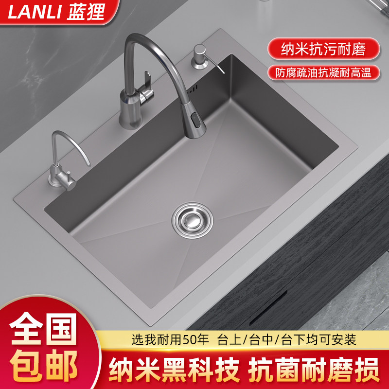 Gun Ash Kitchen Sink Large Single Groove 304 Stainless Steel Nanohome Wash Vegetable Basin Wash basin Dish Wash pool-Taobao