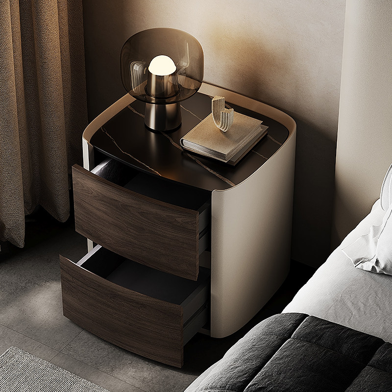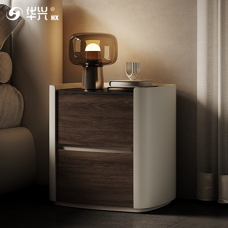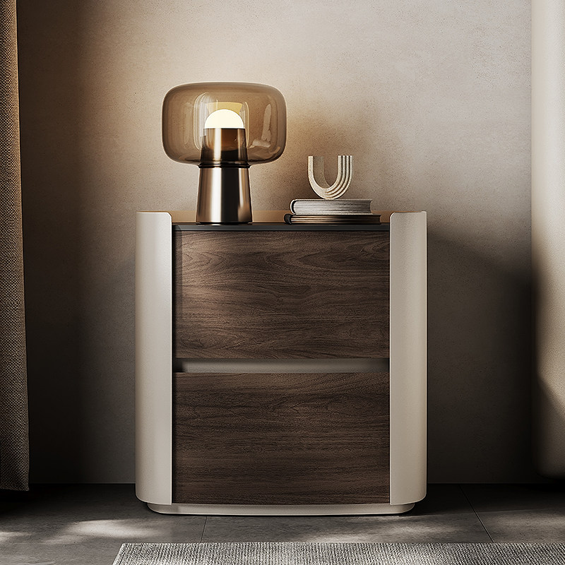 Willy-style minimalist high-end solid wood bed head cabinet modern minimalist light lavish bedroom rockboard bedside cabinet net red small side a few-Taobao