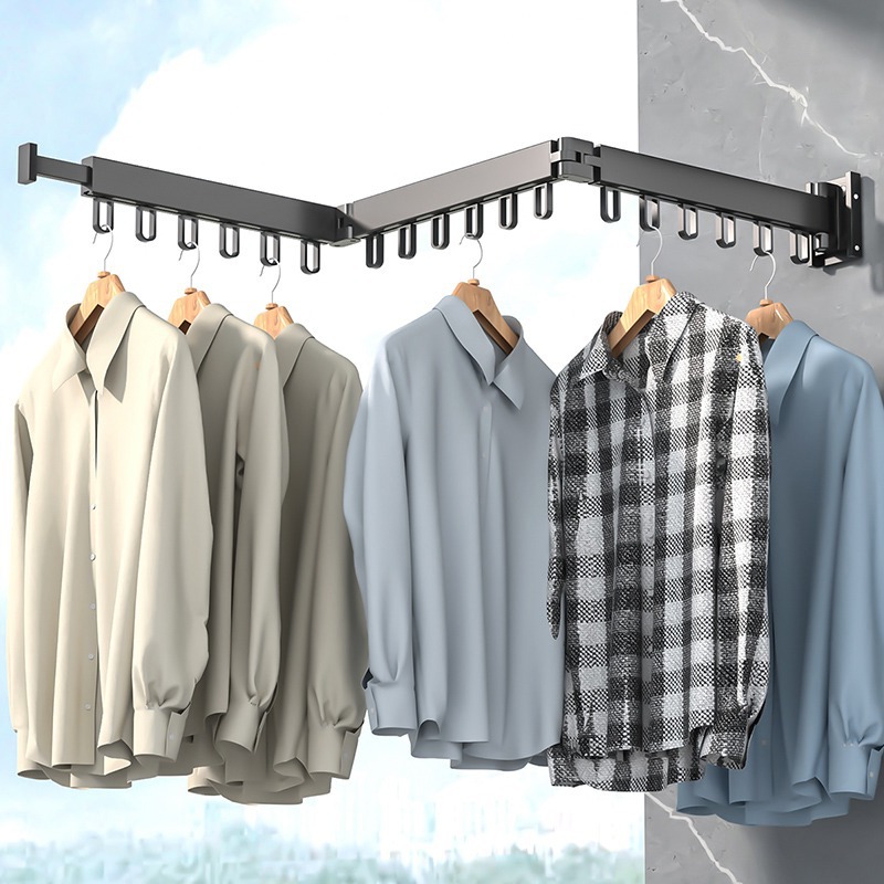Folding and punching-free clothes hanger invisible telescopic wall-mounted balcony sunburn Hide Living Room hidden Living room Maikaron-Taobao