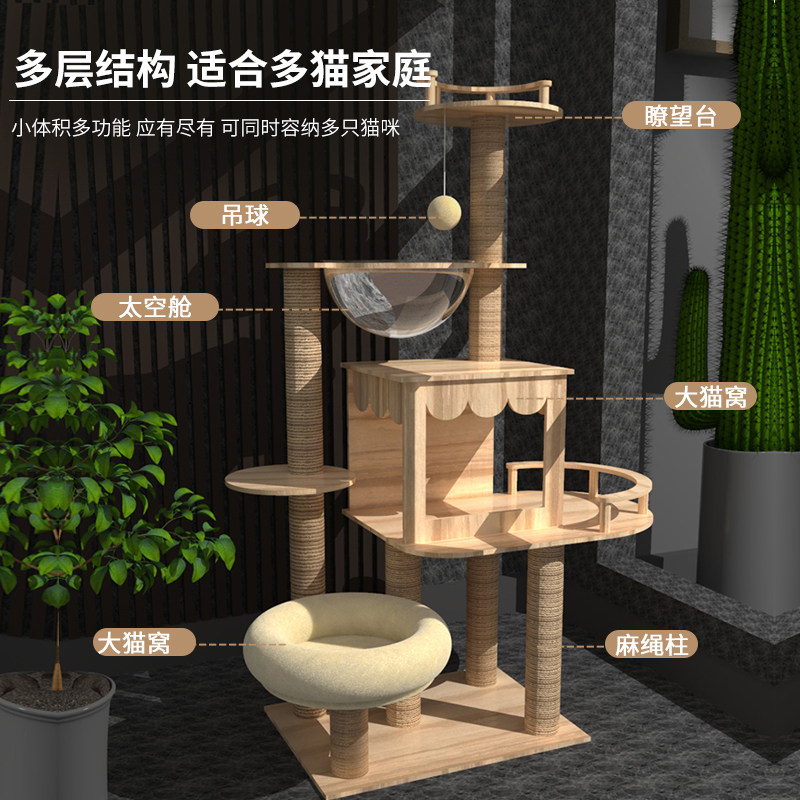 (Lower single stand down today RMB30 )⭐Solid wood style-give the summer ice mat⭐(Mini sea theft boat)★The main picture exploits-the recommended★(nine-story castle)★double cat box-big platform★- (