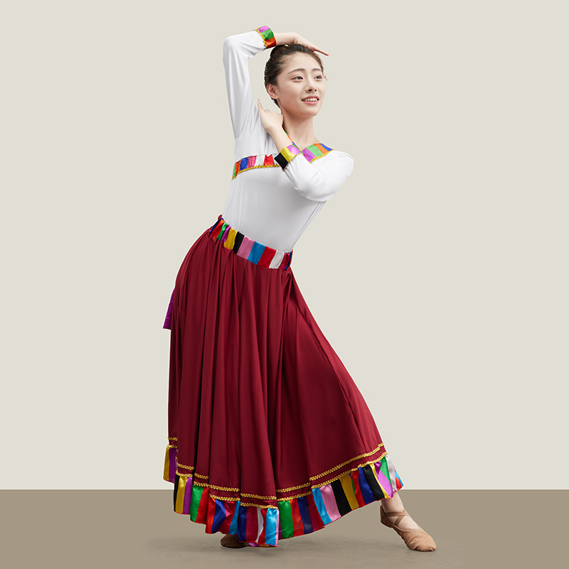 Tibetan Dance Suit Women's Blouse Hide Skirt Half Body Dress Grand Hem Skirt Art Practice Work Out of Adult Classical China-Taobao