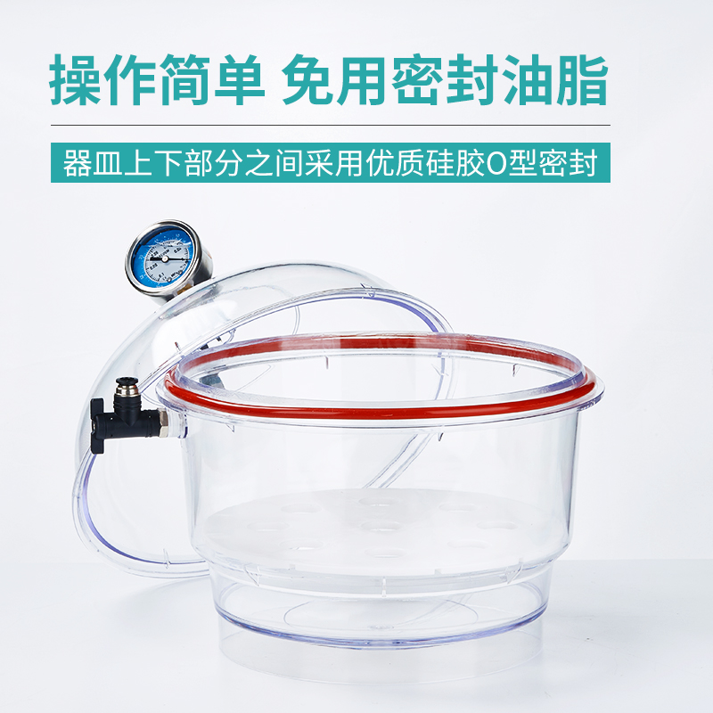 Plastic vacuum dryer 150mm250mm with lid double valve pressure gauge laboratory vacuum dryer transparent vacuuming drying dish not easy to crack damp-proof cylinder vacuum pump suction pump-Taobao