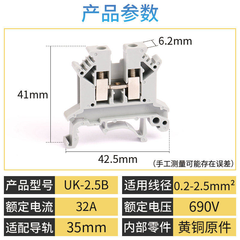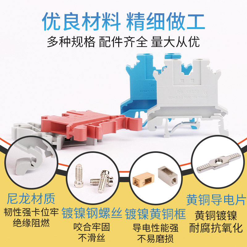 The 2 5MM square track pure copper piece UK2 5b voltage terminal block is not slip UK-2 5N