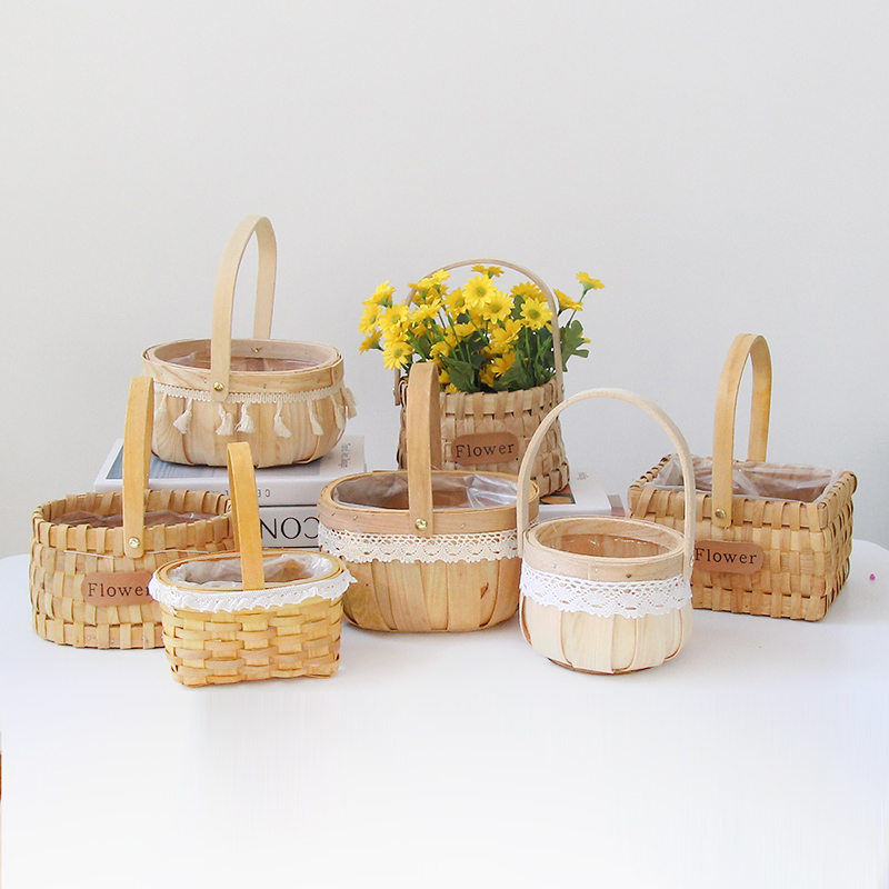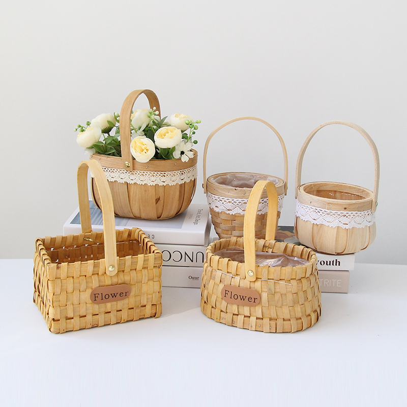 Wood Chips Flower Basket Festive Floral Floral Flowers Flower Arrangements Basket Woven Hand Basket Vines Bricet Fruit Basket Picnic Contain Basket-Taobao