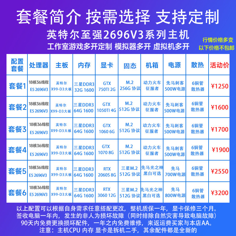 To Strong E5 2696V3 1060 6G Games studio Multi-open computer Host Virtual Machine-Taobao