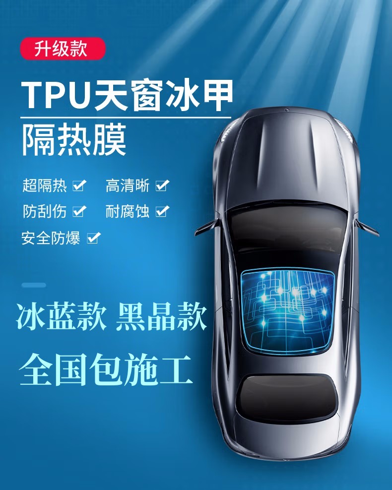 TPU black crystal (small skylight) TPU ice blue (small skylight) TPU black crystal (middle skylight) TPU ice blue (middle skylight) TPU black crystal (panoramic skylight) TPU ice blue (panoramic sky)