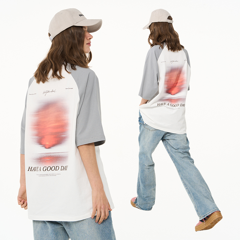 harsh and Cruel Sunset Movies Handwritten Font Pure Cotton Sleeves Short Sleeves Knitted Colored T-shirts
