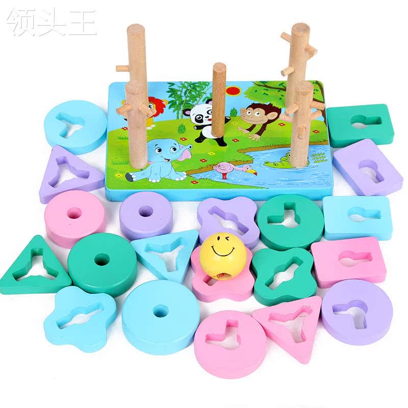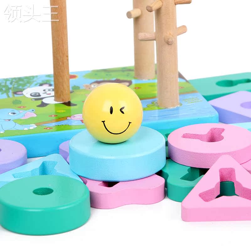 Creative Geometry Pattern Children with Four Columns Banded Beards Early Learn Toys Wooden Block Color Cognition