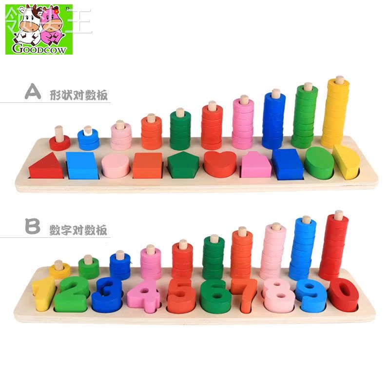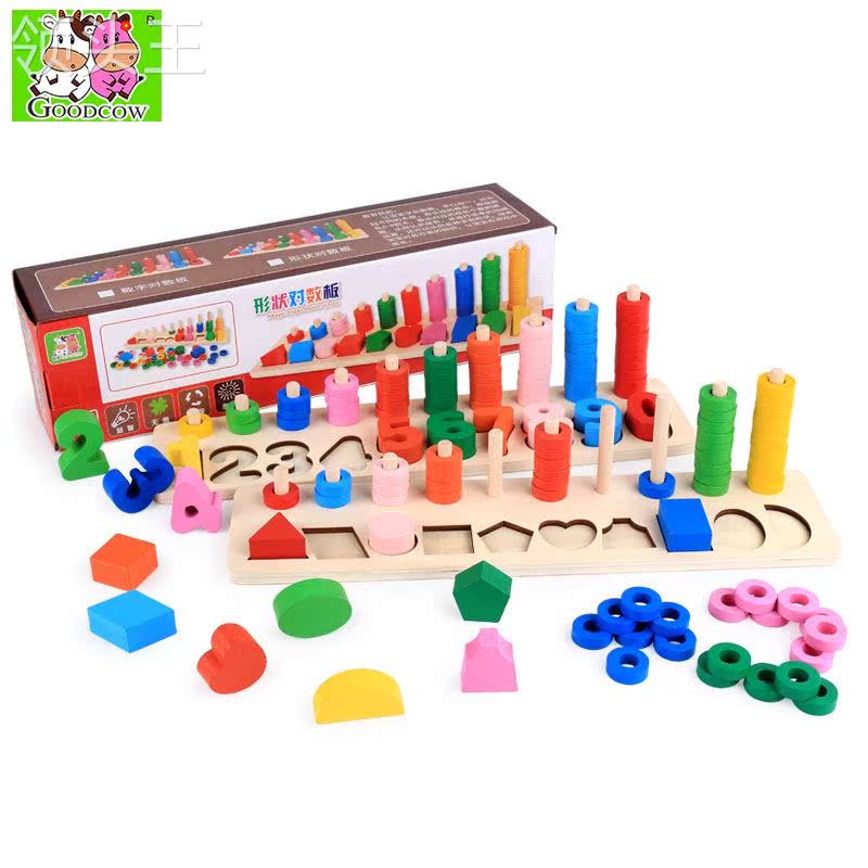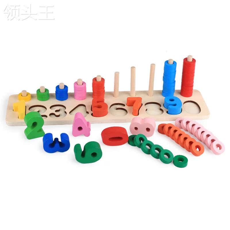 Wooden children's three-in-one toy shape digital logarithm pairing board cognitive counting of wooden wood toys
