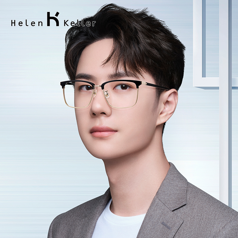 Helen Keller Eye frames male Wang Yibo the same extra-light semi-framed eyebrow frame with myopia degree doctoral glasses-Taobao