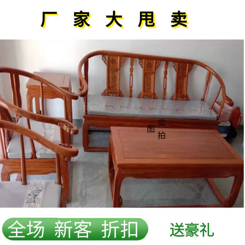 Antique solid wood sofa five-piece set Chinese style palace chair grand master chair elm wood small apartment living room tea table combination furniture