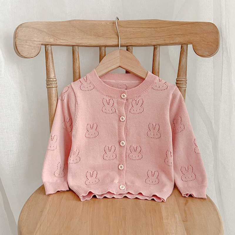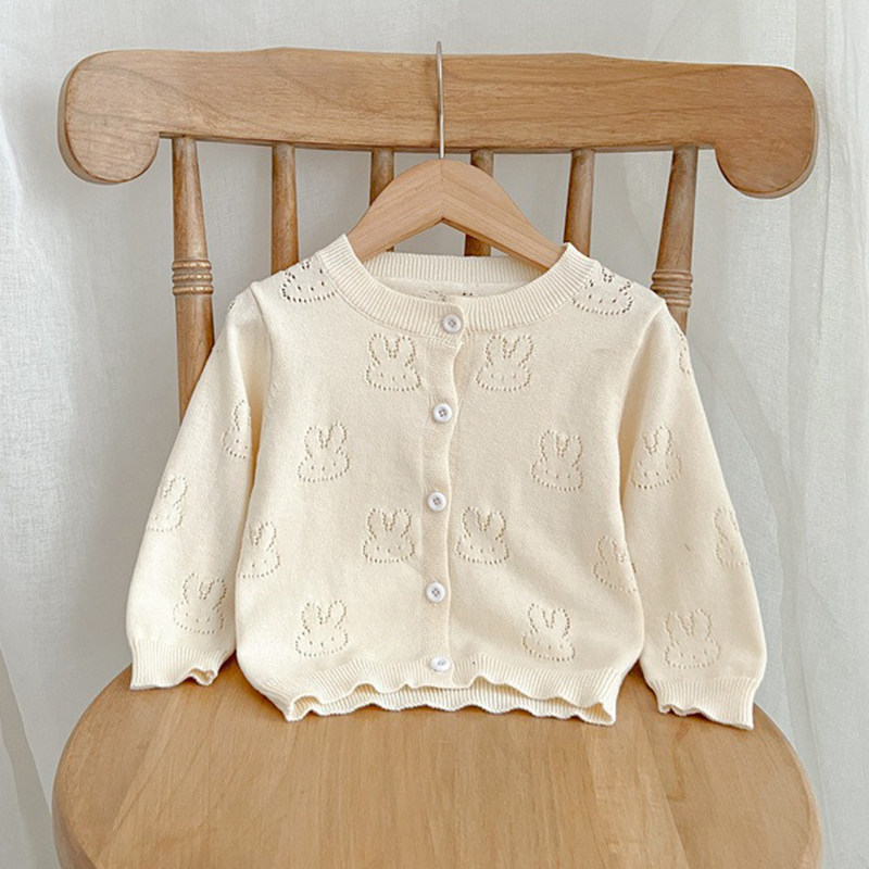 Baby knitting sweater June baby air conditioner spring and summer thin 1 - year - old girl newborn pure cotton sweater coat