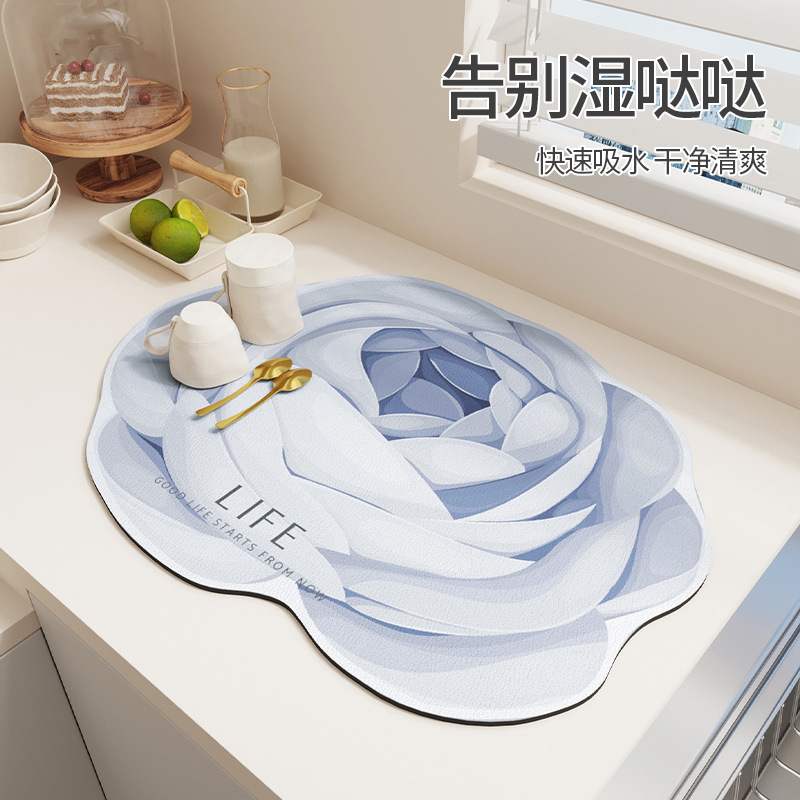 Doormat Mat Flowers Silicon Algae Mud Draining Mat tap Wash Desk Water Absorbing Cushion Countertop Table Dining Cushion Cup Mat bar Desk pad-Taobao