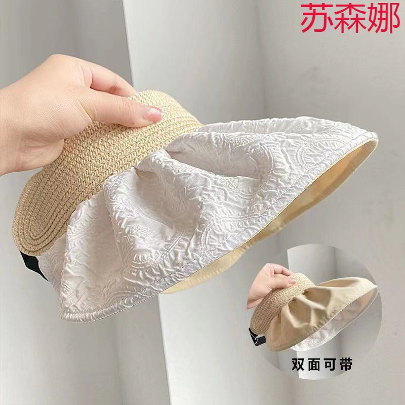 2023 sun hat women's summer travel sunshade sun hat big eaves anti-ultraviolet wild shell hat empty top hat