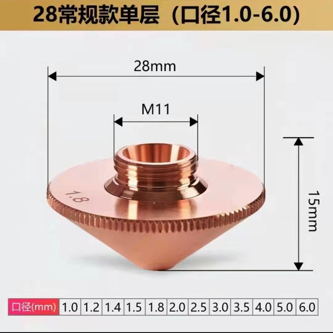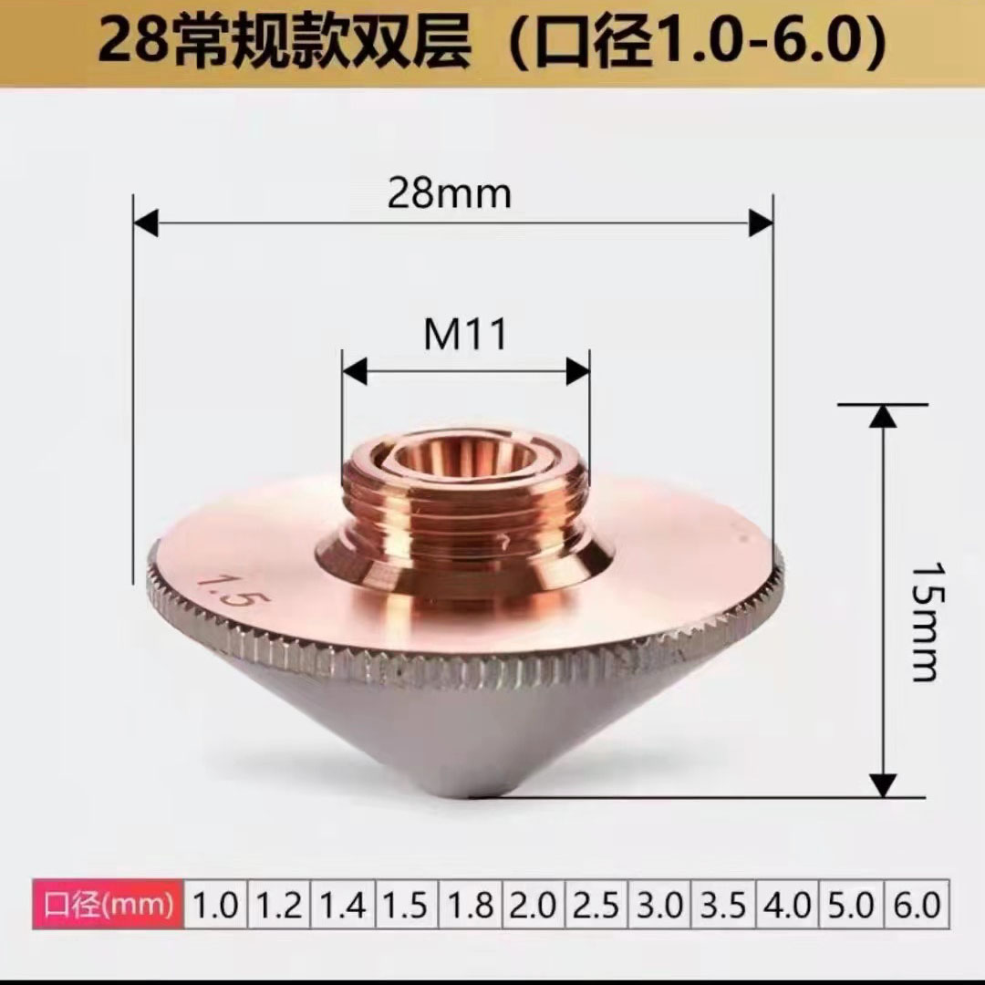 Fiber laser cutting nozzle 28 copper cutting mouth Wan Shunxing Jiaqiang Pre 0 single layer 1 5 double layer