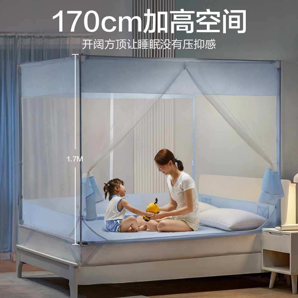 Sitting Bed Anti-Fall Large Space Mosquito Nets-Simple Sitting Bed Anti-Fall Large Space Mosquito Nets-Blues (with anti-dust top) Sitting Bed Mosquito Nets-Gtune Space Trio Open Big Space