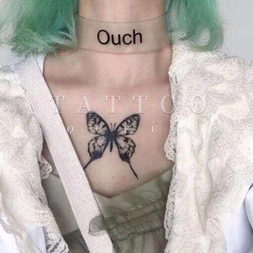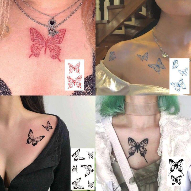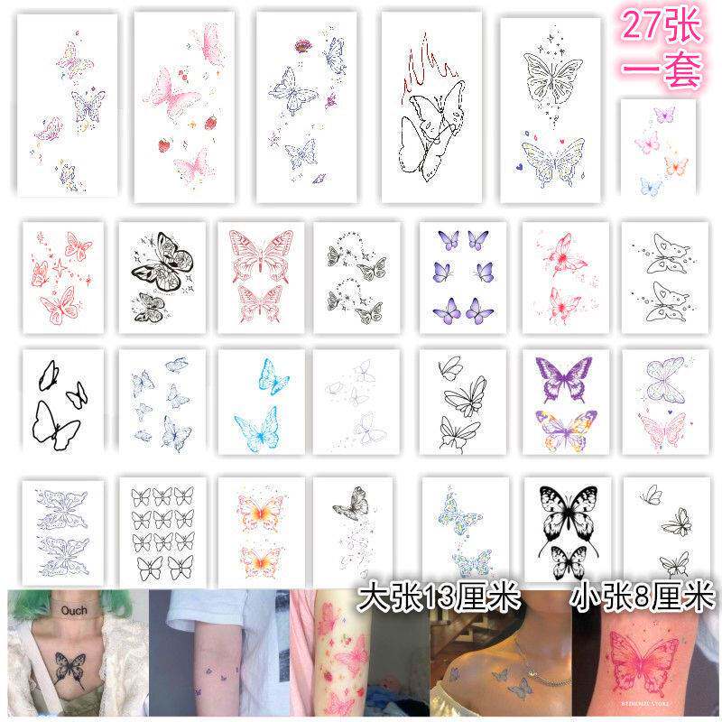 Dark Butterfly Color Girl in Cute Flower Arm Cardtattoo Lady Persistent Waterproof Clock Bone Tattoo