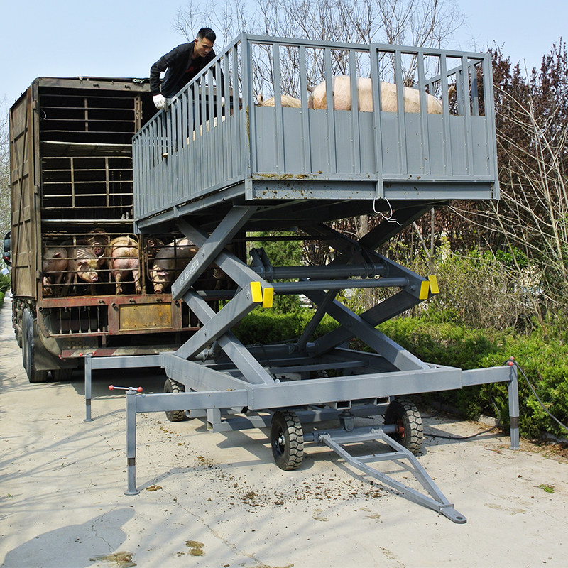 Mobile unloading tables on pound pig lifting platform fixed slope pig farm out pig catch channel