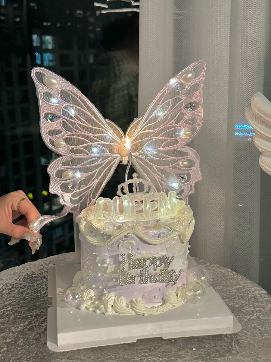 White embroidery butterfly Set blue-purple embroidery butterfly set blue-purple embroidery butterfly with lamp plug-in white embroidery butterfly with lamp plug-in queen three-step adjustment lamp mom