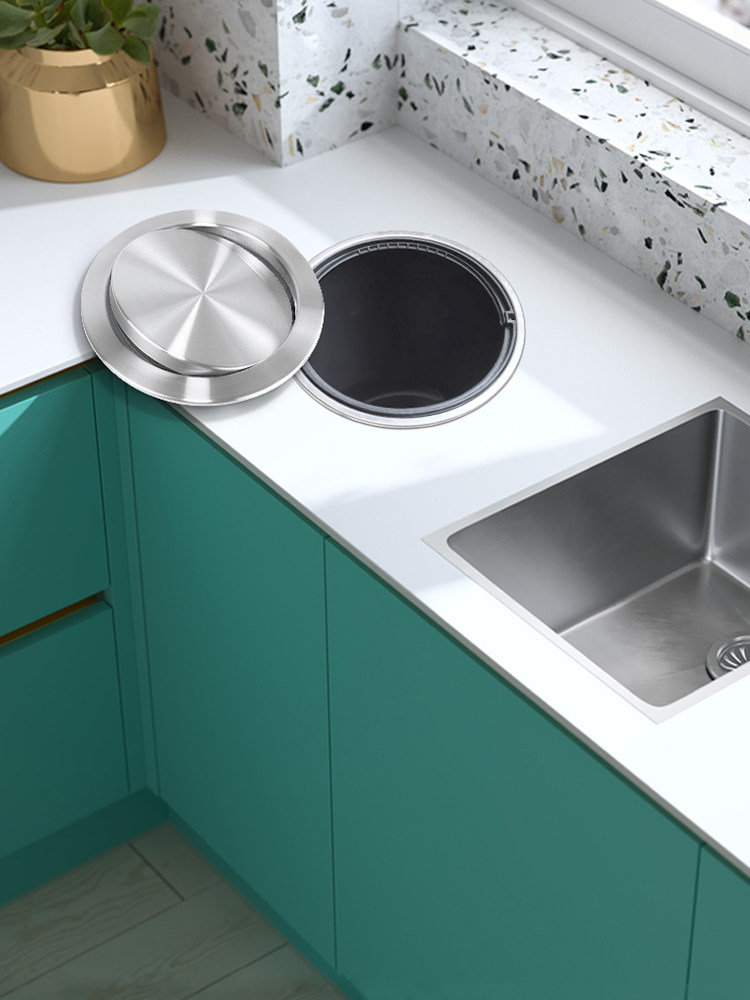 304 embedded stainless steel trash bin Table shake cover cover cover household kitchen toilet cabinet round