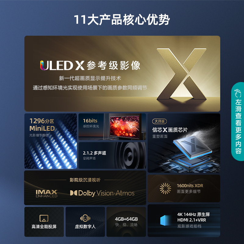 Hisense TV E8 85E8K 85-inch ULEDX MiniLED 1296 partition LCD TV 100