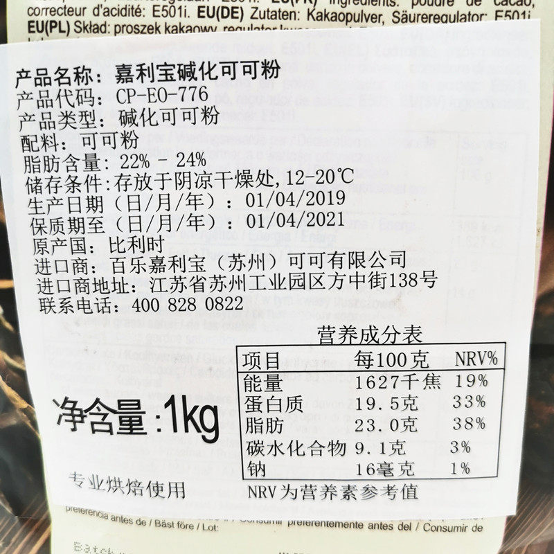 Belgium imports CALLEBAUT Carlibao Alkia Cocoa Powder 1kgco Tiramisu Dessert Baking Raw Material