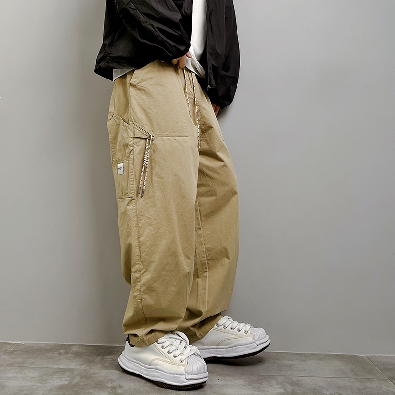 PGUP 100 Hitch Pants Day Ensemble Retro Vibe Uppie Handsome Street Loose Male Pure Cotton Straight Barrel Tooling Casual Pants Tide-Taobao