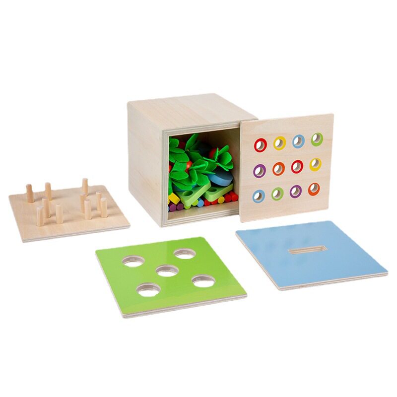 Mont's four-in-one multi-function intelligence box shape plug-up cart toy Ball Teach puzzle toy